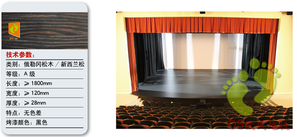 劇院舞臺是演員表演的中心區域,這里的地板要求必須滿足堅硬、耐磨、具有彈性和防止伸縮不平等要求。舞臺地板一般都采用實木地板、比較好的是美國進口俄勒岡松、我國東北紅松等材料制成。